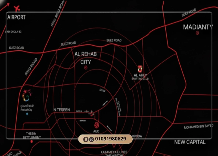 | الموقع | مباشرة على شارع التسعين الشمالي بالقطاع التجاري الرابع في قلب التجمع الخامس |