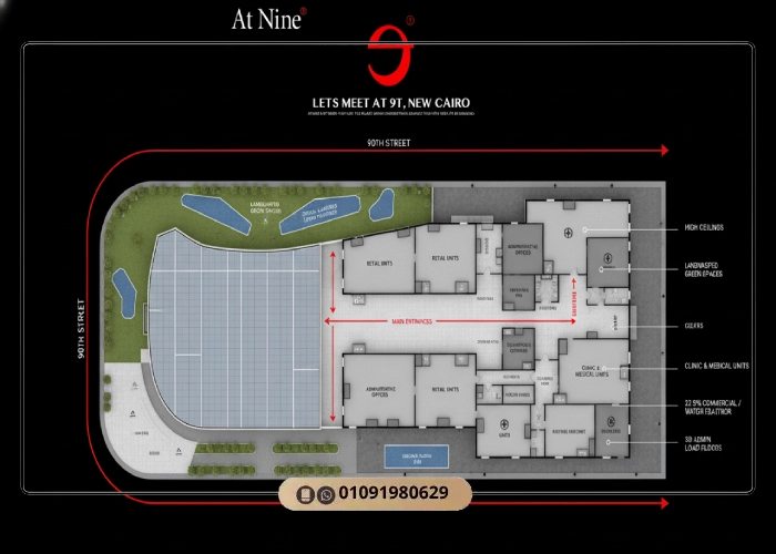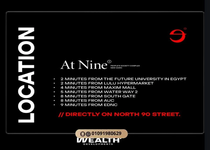 مول ات ناين التجمع الخامس Mall At Nine T New Cairo قدمت شركة ويلث بلس للتطوير العقاري Wealth Plus Developments أحدث مشروعاتها التجارية في قلب التجمع الخامس مباشرة على شارع التسعين الشمالي، بالقطاع التجاري الرابع وهو واحد من أكثر المواقع حيوية وطلبًا في القاهرة الجديدة.