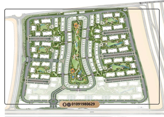 Hassan Allam’s Park Central Compound occupies 285 feddans, divided into two land parcels creating two phases with different areas. The first phase extends over 140 feddans, occupying the upper section of the project, while the second covers 145 feddans in the lower section.