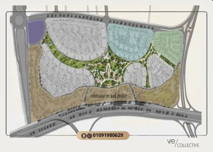 يمتد كمبوند كوليكتيف على مساحة إجمالية تبلغ 186 فداناً، خُصص 80% منها للمساحات الخضراء واللاندسكيب و20% فقط للمباني.