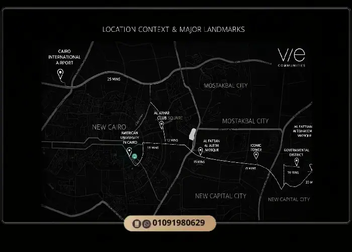 يبعد كمبوند كوليكتيف عن الجامعة الأمريكية بالقاهرة الجديدة حوالي 15 دقيقة بالسيارة عبر الطرق الرئيسية.