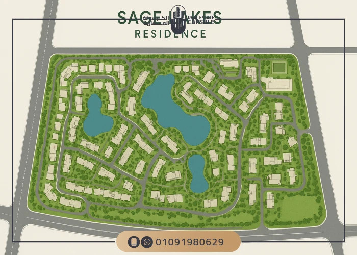 أما كلمة Lakes فهي إشارة إلى المسطحات المائية واللاندسكيب المحيطة بالمشروع والتي تمنح السكان إحساس بالطبيعة والانتعاش الدائم ومن خلال هذا الاسم أرادت الشركة أن توصل رسالة واضحة أن الحياة داخل كمبوند ساج ليكس ريزيدنس ليست مجرد سكن بل هي تجربة متكاملة حيث يمكنك التمتع بالجمال الطبيعي والفكر العمراني العصري لتخلق بيئة مثالية للمعيشة والاستثمار.