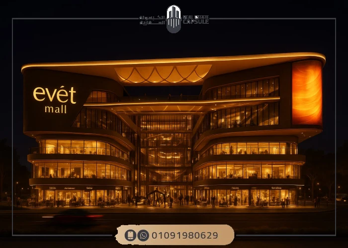 يعد مول إيفيت العاصمة الإدارية الجديدة Evet Mall New Capital واحد من المشروعات التجارية المميزة التي تنطلق بقوة في قلب منطقة MU12 حيث يأتي المشروع بفكرة واضحة تقوم على إنشاء مول تجاري خدمي ترفيهي متكامل يخدم الكثافة السكنية والجامعية المحيطة به معتمد على موقع استثنائي وتشغيل فعلي يضمن عائد استثماري حقيقي كما يتميز المول بكونه تجاري فقط ويتكون من دور أرضي و4 أدوار علوية ليضم وحدات Retail وF&B وFood Court دون أي خلط مع أنشطة أخرى.