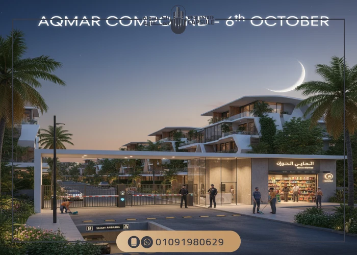 كمبوند اقمار 6 اكتوبر هو مشروع سكني متكامل يفتح لك باب لحياة جديدة بمفهوم مختلف حيث يجمع بين التصميم العصري والخدمات المتكاملة في موقع استراتيجي بقلب أكتوبر على طريق الواحات أمام جامعة MSA وحيث يتميز Compound Aqmar بأنه مقام على مساحة واسعة تبلغ 41 فدان ليمنحك وحدات متنوعة تشمل الشقق بمساحات مختلفة من البنتهاوس والفاميلي هاوس بالإضافة إلى وحدات فندقية مجهزة بالكامل ليكون بذلك مشروع سكني واستثماري.