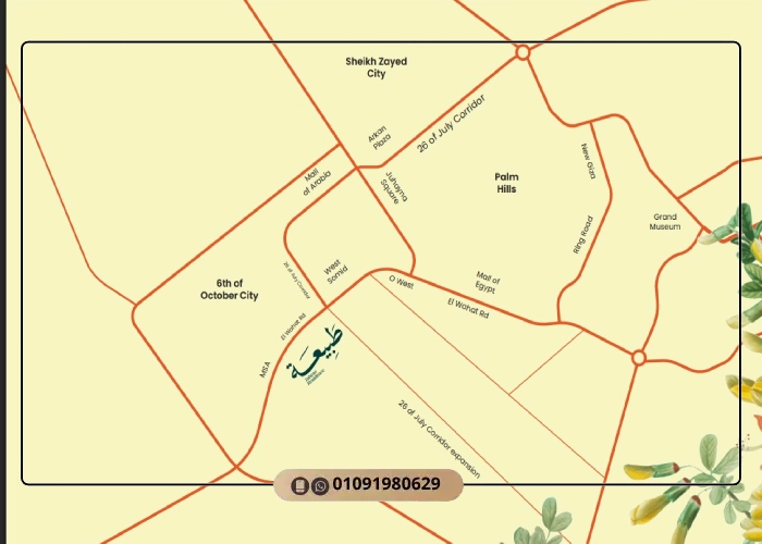 طريق الواحات: من أهم المحاور الرئيسية بمدينة 6 أكتوبر و يربط كمبوند Tabeaa 6 October بالمناطق الحيوية بسهولة.
