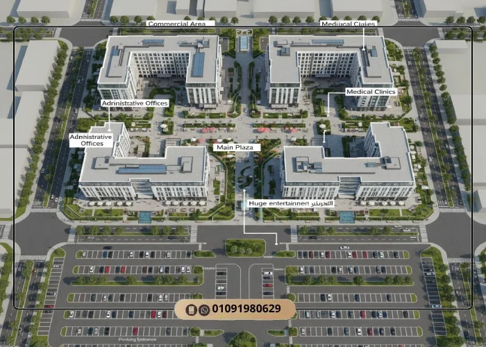 ويضم المشروع وحدات متنوعة تجارية وادارية وايضا طبية بمساحات تبدأ من 30متر بأسعار 60,000جنيه للمتر أما الحجز المبدئي فهو بسيط و قابل للاسترداد وهو عبارة عن 30,000جنيه كاش لأي وحدة.